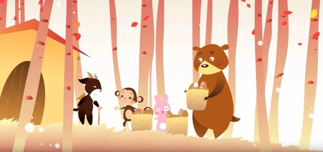 Ngày xưa, có một lần Gấu, Thỏ và Khỉ rủ nhau cùng tới thăm nhà bác Dê. Trước khi về, bác Dê bảo chúng - Ðây là ba giỏ khoai lang, mỗi cháu mang về một giỏ. Bằng giờ sang năm, đưa lại cho bác số khoai lang cũng như thế...