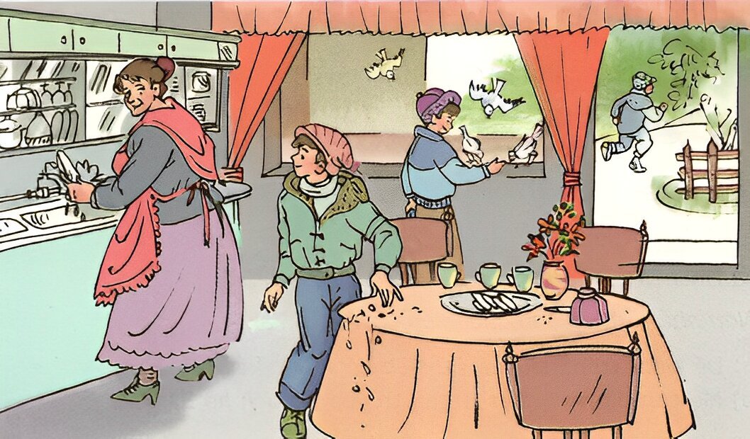 Nghỉ hè, Ni-ki-ta, Gô-sa, Chi-om-ka về thăm bà ngoại. Ăn cơm xong, cả ba rời khỏi bàn...