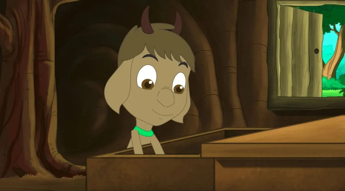 Một con dê con được người chăn dê để lại trên mái lá của chuồng dê để tránh cho nó khỏi bị nguy hiểm bởi thú dữ. Dê con đang chạy nhảy ra gần rìa mái lá thì bỗng nó nhìn thấy một con cáo và bắt đầu chế giễu cáo...