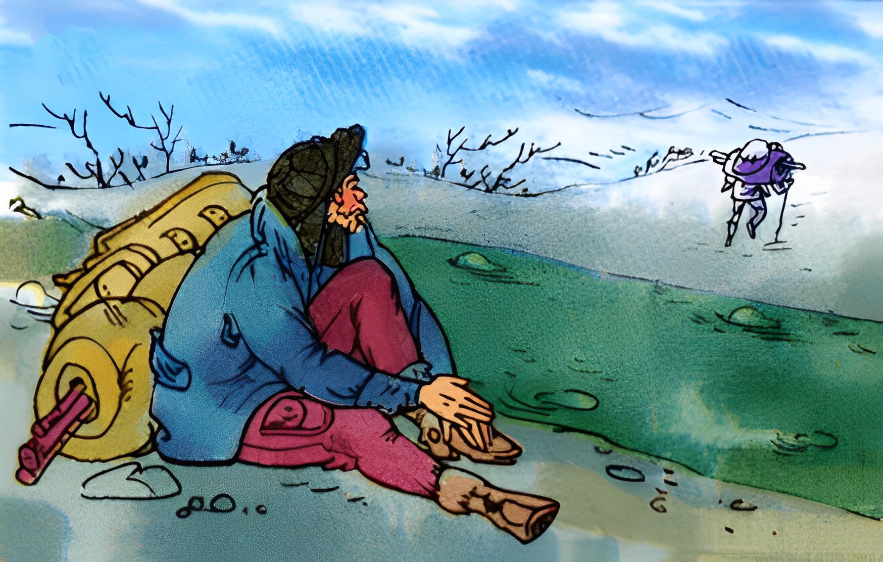 Giôn và Bin khập khiễng đi ra bờ suối. Mỗi người mang một khẩu súng và một cuộn chăn trên vai. Cả hai đều thấm mệt sau những ngày gian khổ dài đằng đẵng. Giôn bỗng trượt chân suýt ngã.